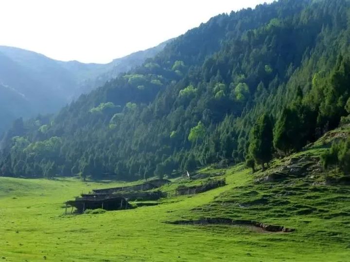 有青草茂盛的高山牧場