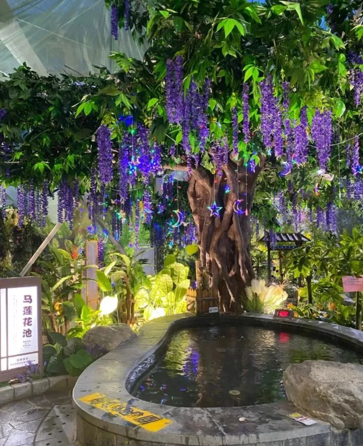 同時,溫泉泉水取自深井鑽探的天然溫泉水,富含幾十種人體必需的礦物質和微量元素,不僅有助於皮膚美容,還可以與預防疾病,更別說這裡的裝修風格時尚前衛,隨手一拍還以為是在三亞呢!