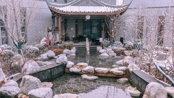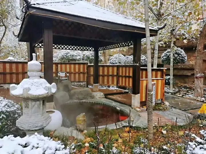 園區具有蘇州園林雅致之風,配合落雪,更添幾分冬季之古樸美。其中室內13個泡池,室外22個泡池,5個私湯湯屋、3個包間商務泡池。滿足各類體質人群的溫泉需求。