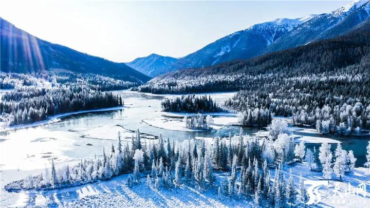 喀納斯景區的春夏秋季景色聞名中外,而它如水墨山水畫一般的冬景同樣迷人。這裡的霧凇更令人叫絕,潔白晶瑩的樺林霧凇精巧而夢幻,仿佛大自然的工藝品。