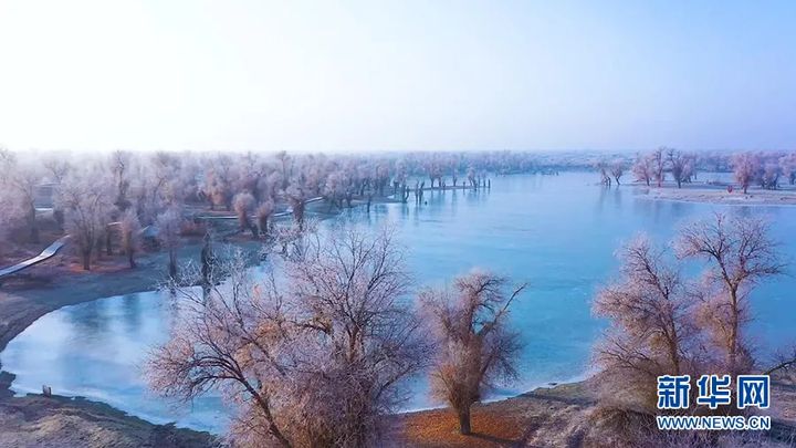沙雅縣胡楊林霧凇美景。圖片來源新華網。阿迪力 攝