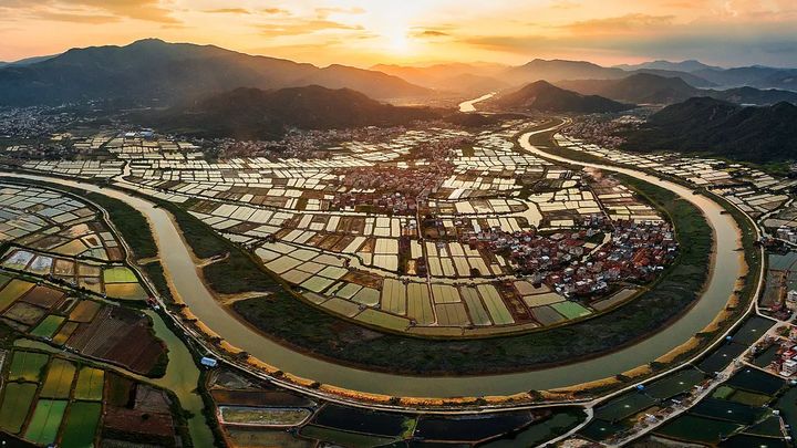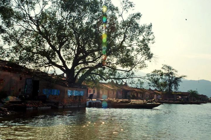 落日餘暉,古榕映影,渡舟環繞,偶見幾隻白鷺駐足覓食,又見古厝新宅交相輝映,錯落有致,別有一番風味。