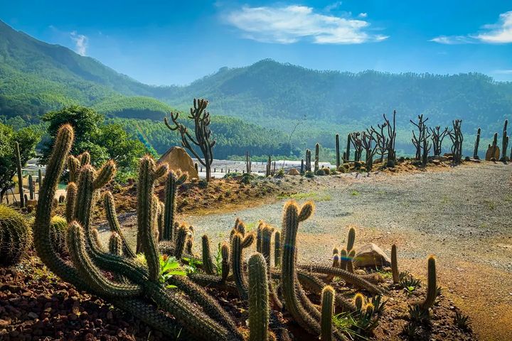 位於雙第華僑農場五一村。園區內專業生產仙人掌與多肉植物,種植面積360畝,按五大洲劃分為五大片區,仙人球的品種4000餘種,溫室面積6萬平方。種植的植物不僅有高大的武倫柱等仙人柱和象腿樹、猴麵包等高大的多肉樹種,有大戟科、夾竹桃科等灌木形品種,還有小巧的地被番杏、紅葉光棍樹等地被形植物。光仙人球的品種就在五六百種以上,是一個種苗基地,也是一座名符其實的植物公園。