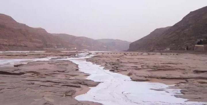 壺口瀑布十裡冰河,彎彎曲曲的十裡龍槽在冬天此時看不到黃河水,入眼十裡冰封,像一條白色的長龍蜿蜒匍匐。龍槽積滿了冰淩,連接兩岸,雖然看著冰層厚實,但其實非常危險,不可沿冰過河。