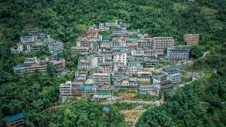 坐落於大明山腹部的『下水源』,在半山腰上的民居,密集而有序,遠遠看去,神似布達拉宮!
