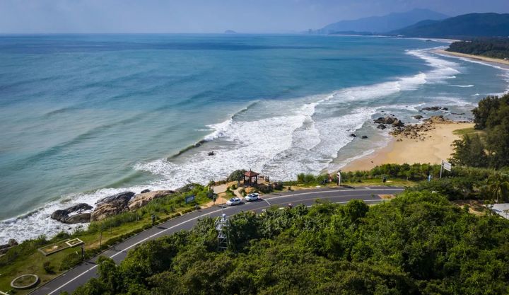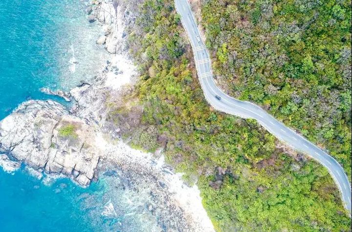 傳說中會講故事的公路,是景觀、環境、人文、創意的結合體,全長35.24公里,途經禮紀鎮、東澳鎮、萬城鎮,串聯了石梅灣、南燕灣、神州半島等多個美麗海灣。公路離海非常近,海浪聲就在耳邊,而另一旁則是椰影婆娑,絕對是航拍愛好者們的取景勝地。