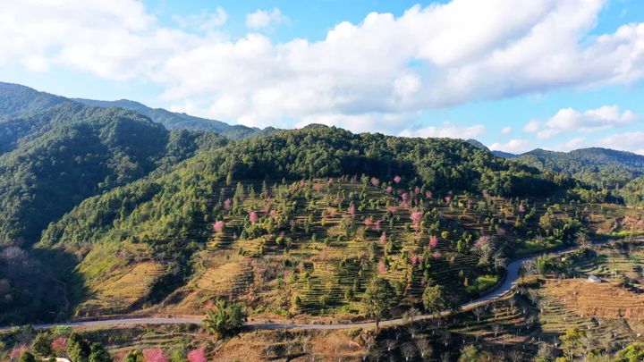 紅河州建水縣雲龍山的冬櫻花競相綻放