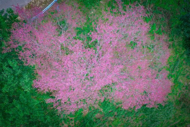 山間一抹抹粉色格外醒目