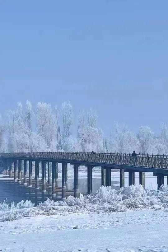 吉林市的松花江畔,霧凇花格外飽滿,這是這個冬季最後的綻放。寬闊的江面水汽氤氳蒸騰,茫茫飄蕩,風起處,江水悠悠,波紋綿延不絕。江岸的垂柳一眼望不到頭,細細的柳條都裹上了厚厚的冰晶,在陽光的照耀下,玲瓏剔透,美得讓人不忍觸碰。