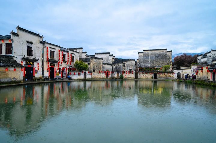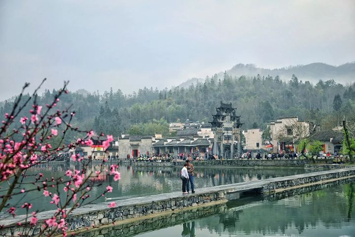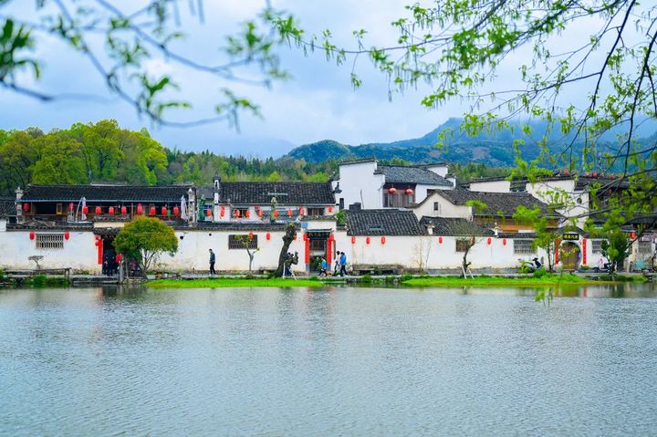 在宏村,南湖的翠柳突出嫩芽,一副絕美的山水花卷徐徐展開。
