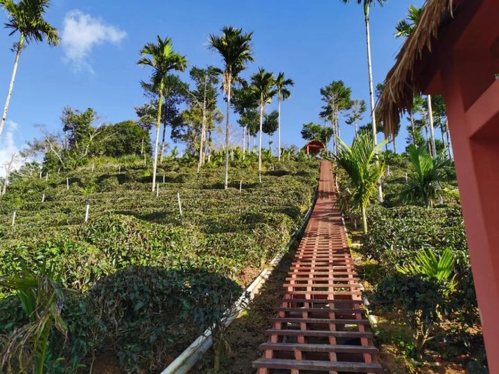 如今,在新村村裡,有民宿、農家樂、飯店、小吃店、理髮店、手工制茶坊、便利店等,為廣大遊客提供了旅遊之便,不止如此,新村茶園修建了觀光步道和觀景亭,遊客可以在茶山一邊體驗採摘,一邊在山頂體驗五指山的無限風光。