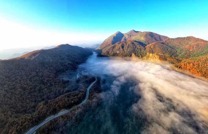 朝陽之下,雲海翻湧