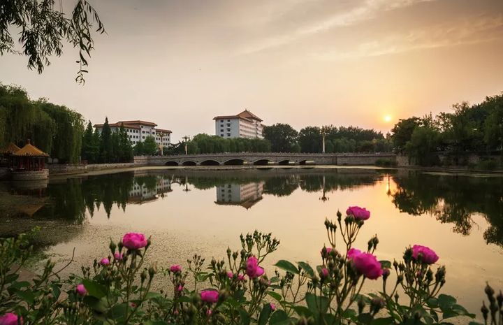 孔子研究院的高亭大榭,與盛放的鮮花相映成趣