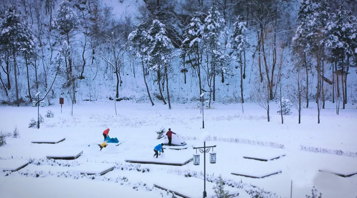 大雪紛飛,人們好像來到了一個幽雅恬靜的境界,來到了一個晶瑩剔透的童話世界,勾起每個人的童年回憶,變得純潔而又美好。