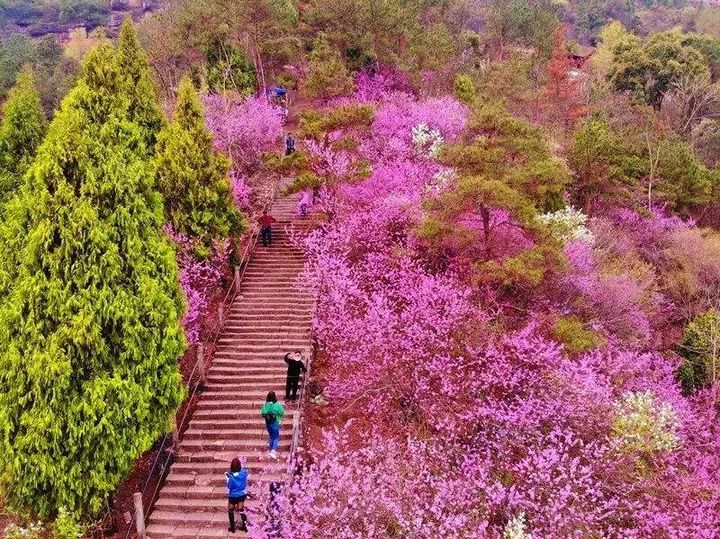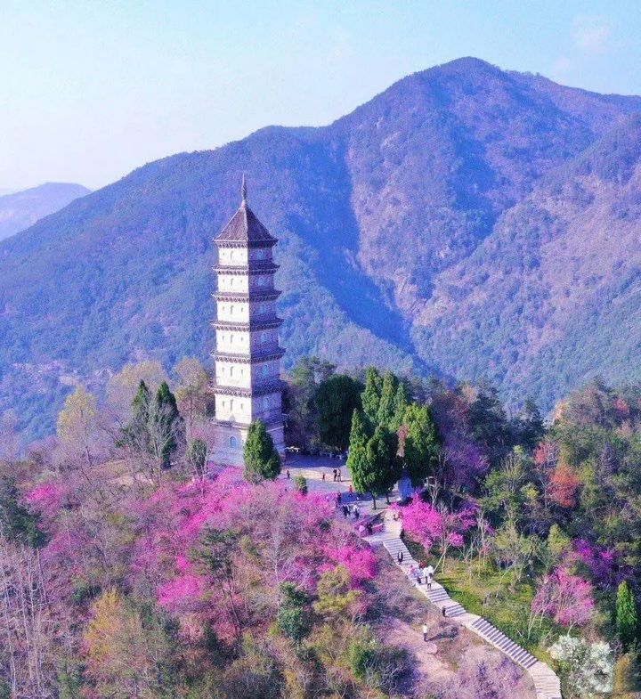 如果你想透透氣,那麼請一定要去赤城山走走!那漫山的紫荊花開,粉紫色的花朵與巍巍古塔、秀麗的山脈交相輝映,人行其間,猶入畫中。