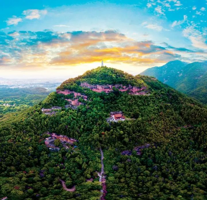 赤城山又稱燒山,是水成岩剝蝕殘餘的一座孤山。 因其山赤,石屏列如城而得名,是天台山中惟一的丹霞地貌景觀。