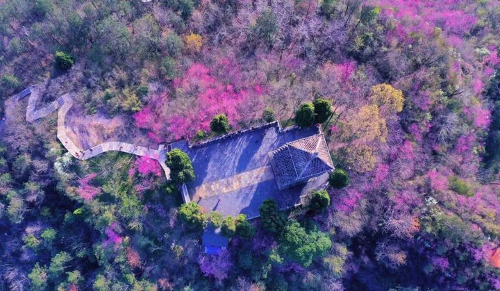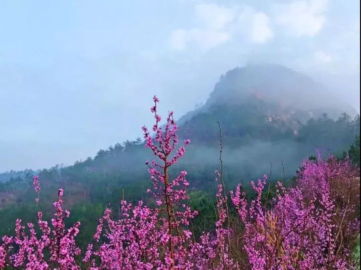 赤城山上的紫荊花雖為野生,卻靈性十足,而赤城山自古便是佛道雙修之地,山中既有道教第六洞天“玉京洞”,也有浙東著名尼庵“紫雲洞”,還是少年濟公讀書的地方,建文帝也曾兩次在此度歲,山頂還有一座“梁妃塔”。選擇赤城山作為棲息地,八成是因為此山的特質正好符合了她“和睦”脾性吧。
