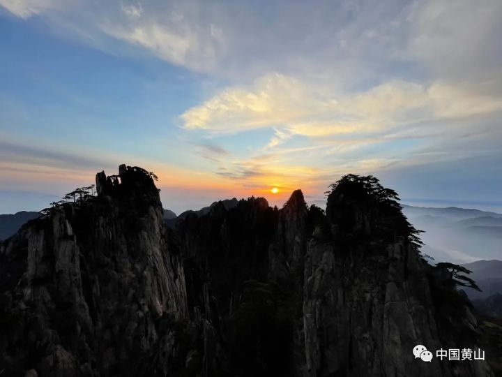 遠眺山巔,霞光璀璨,