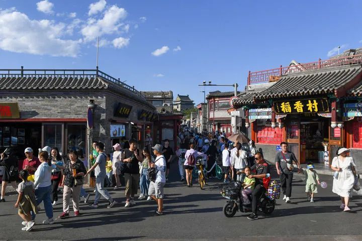 人們在北京什刹海一帶遊覽參觀(2023年6月9日攝)。新華社記者 鞠煥宗 攝