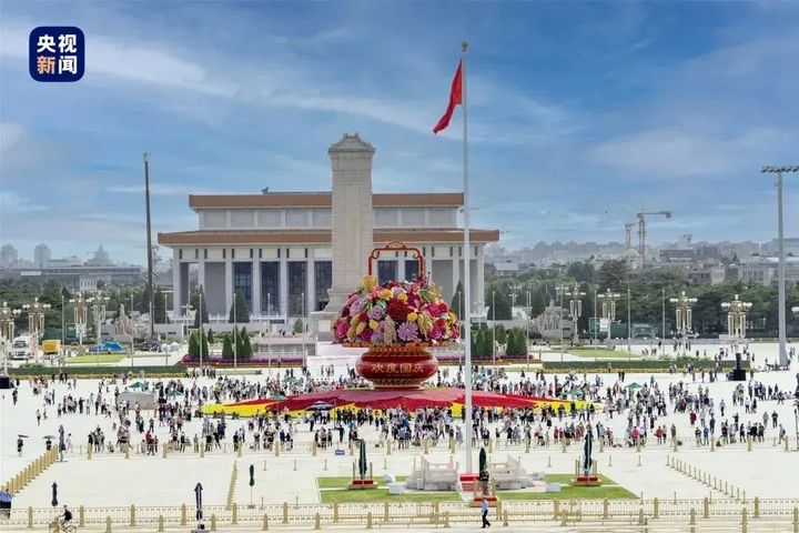 天安門廣場及建築群位於北京中軸線的核心位置,依次分佈著人民英雄紀念碑、毛主席紀念堂兩座紀念性建築,中國大陸國家博物館、人民大會堂兩座公共建築。