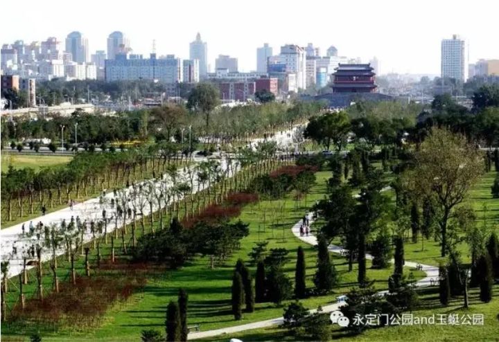 永定門公園(東城園區)是北京“十字景觀軸”重要組成部分,被尊稱為“龍脈”“天街”。公園北起南緯路,南至永定門廣場,南北長1240公尺。東西位於文化氛圍濃厚的先農壇和天壇之間,最大面寬285公尺。整個公園以中軸線為分界點,切割成東、西兩片。
