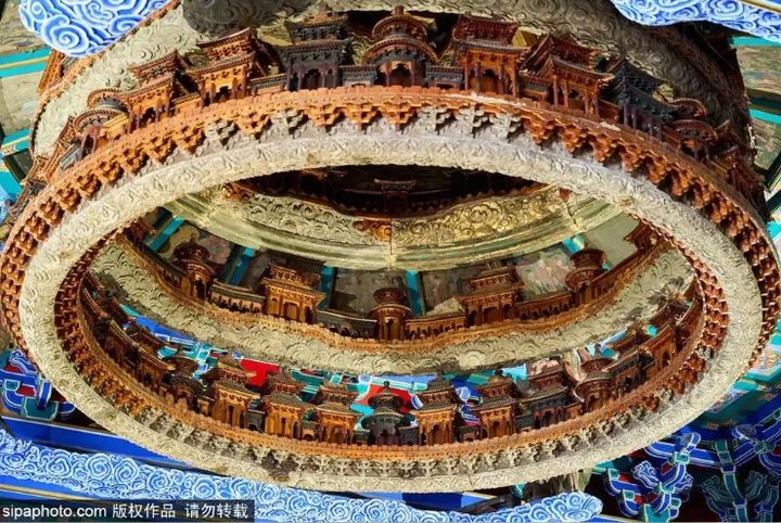 北京古代建築博物館坐落於明清皇家壇廟先農壇內。北京古代建築博物館的鎮館之寶當屬隆福寺正覺殿天宮藻井。藻井上下共分六層,每層圓形主框架上均細雕雲紋圖案,藻井的最上方是一幅星象圖,存星1427顆。