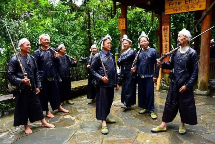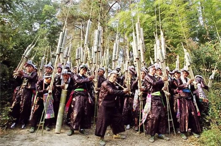 岜沙人熱愛自然,親近森林,森林是他們開展各種民俗活動和迎賓的場所。 當客人入寨時,盛裝的村民站在寨門口吹起蘆笙,端著米酒,鳴放火槍、鐵炮歡迎。 然後到村後林中蘆笙坪舉行隆重的迎賓儀式,並跳起蘆笙舞。 在這裡,岜沙兒女呼吸著自然的新鮮空氣,展示著人與自然的融合與協調。