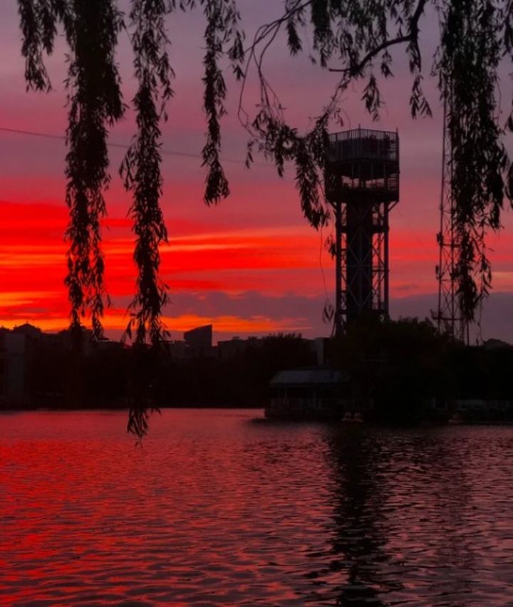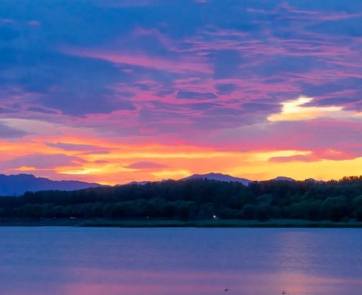 湖邊的咖啡館也是拍攝晚霞的好位置。