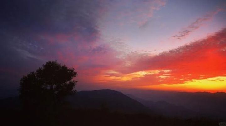 逆光看晚霞的同時,山巒“滾動”的剪映,