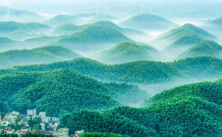 從空中俯瞰,萬畝竹海形成了神奇的峰叢景觀,饅頭狀的峰叢相連而頂部林立,顯示出喀斯特地貌的明顯特徵。