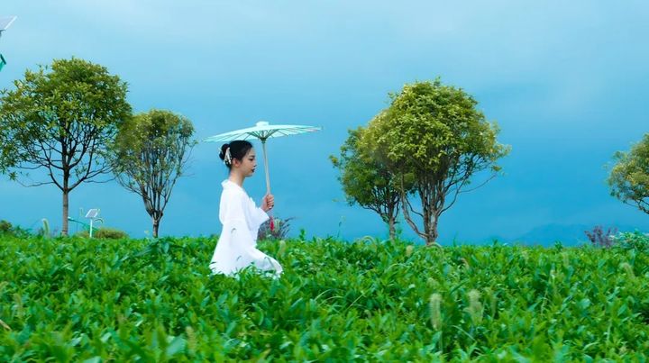 換上身素淨的漢服衣衫,再撐上油紙傘,隨意在茶園裡走走,每一處都是絕佳機位。