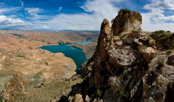 龍羊湖,是黃河幹流上庫容量和庫面積最大的淡水湖泊,生物物種豐富多樣,金鱒、虹鱒、三文魚等高原冷水魚遊弋其間。