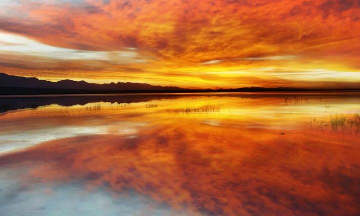 在離德令哈不遠的可魯克湖,日出的朝霞與群鶩齊飛,日落的晚霞輝映秋草。藍色的水波和蘆葦蕩漾,安靜、低調、無人打擾。