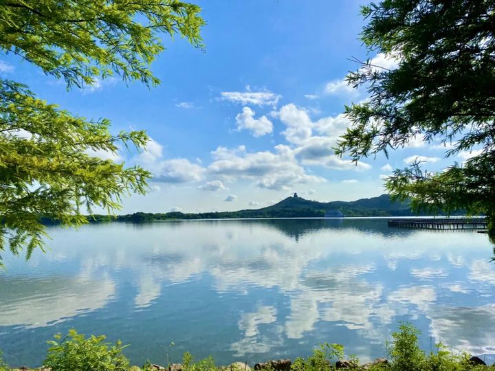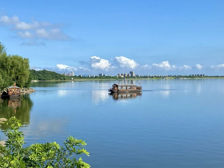 靈動的湖水,只簡單勾勒,便成了一幅自然山水畫卷。 踏上遊船,倚在船艙內,閒聽搖橲欸乃,湖光山色之景迎面而來,身心都會平靜下來。