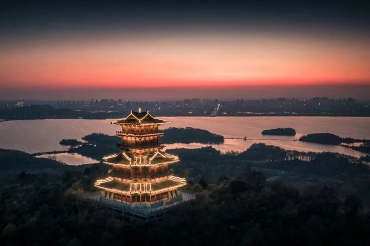 即將入夜的絢爛彩色,令人心醉。 當平天湖的夜幕降臨、華燈初上,整座城市目之所及盡是流光溢彩,呈現著璀璨奪目、宏闊壯麗的夜景盛宴。