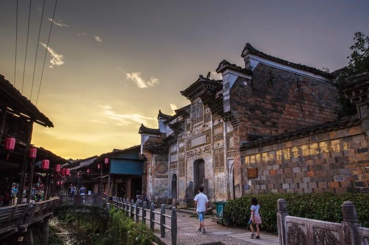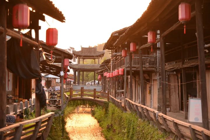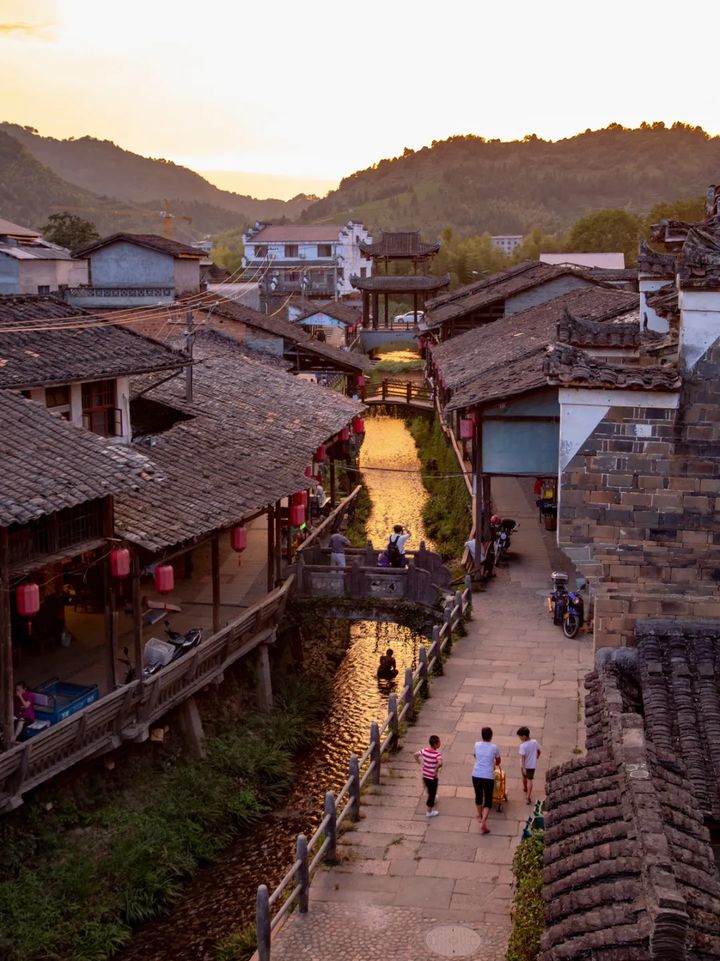 民居依水而建,錯落有致,夕陽西下,頗有“小橋流水人家”的詩情畫意。