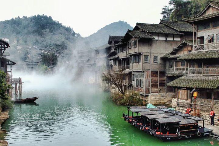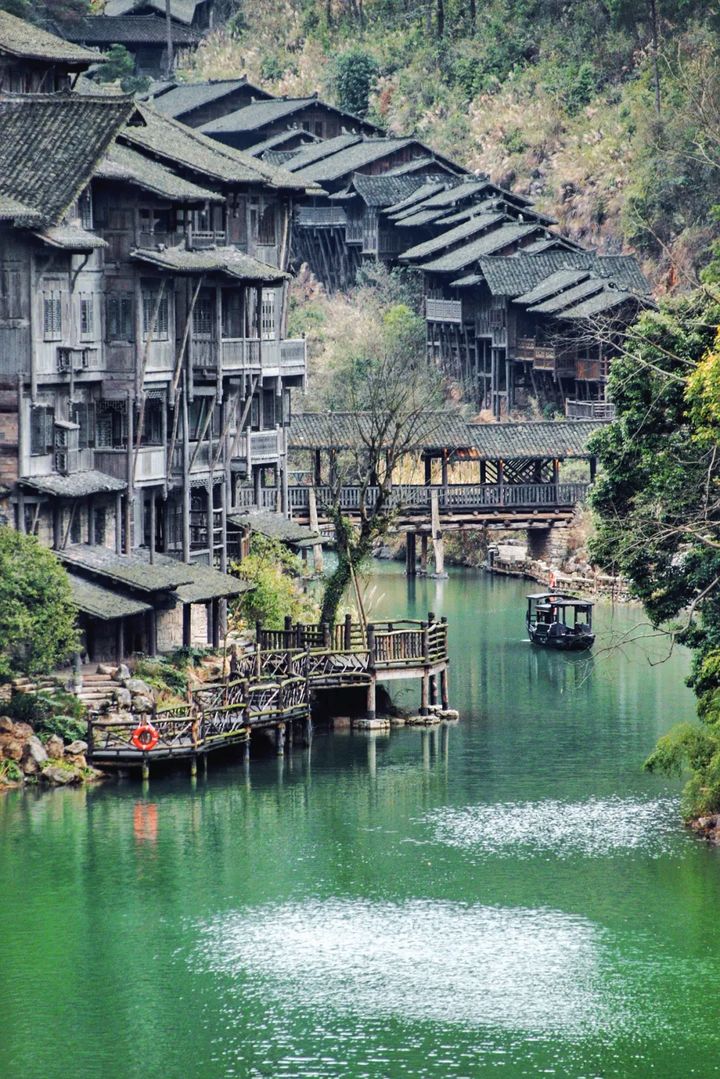 當水墨畫卷從紙上醒過來,就成了烏江寨的模樣。 關於對夏的幻想,搖櫓烏江寨就能滿足。