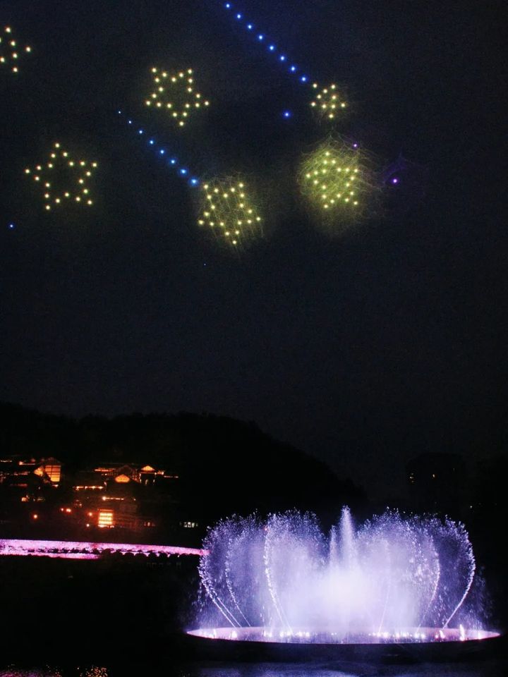 晚上的「無人機表演秀」也絕對不能錯過。 變幻莫測的表演照亮山夜,映人夢寐。