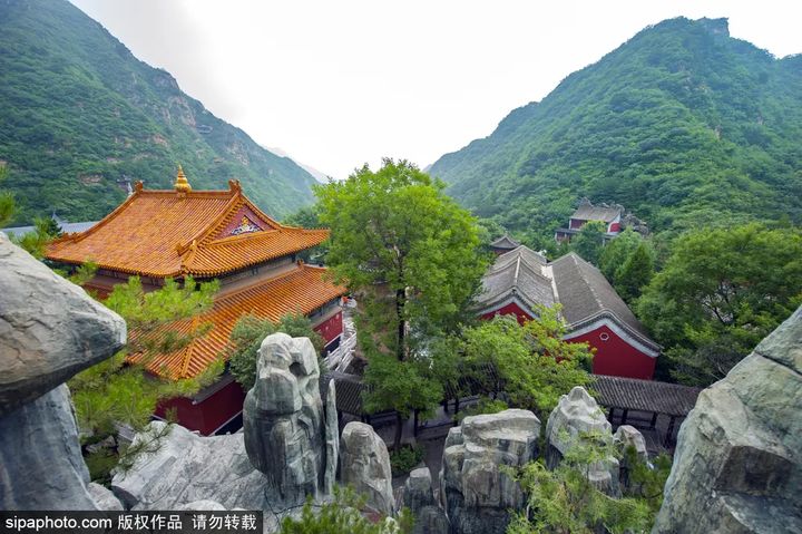紅螺寺始建於東晉咸康四年,坐北朝南,依山勢而建,佈局嚴謹,氣勢雄偉。 夏季,百萬桿翠竹與千畝古松林環擁著整個寺院,形成了一幅“碧波藏古刹”的優美畫卷。