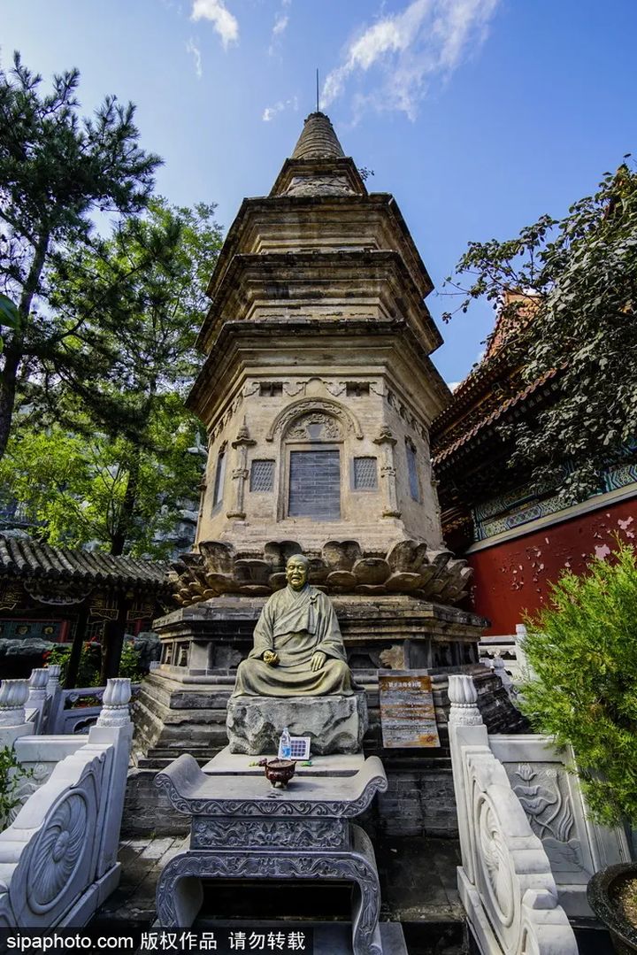 大雄寶殿西側現存一座「圓正法師塔」,是金代密簷式塔中的傑作,也是國內罕見的珍貴塔種,屬於北京市保護文物。