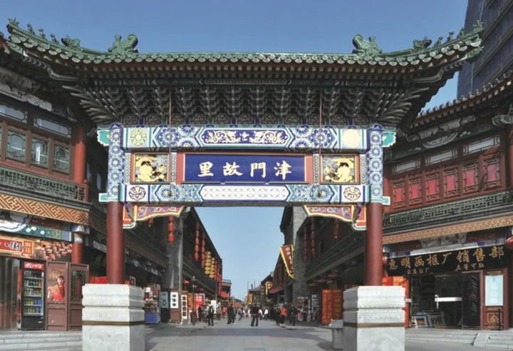 古文化街是天津民俗一條街,以天后宮為中心,北起通北路,南至水閣大街,全長687公尺。 南北街口各有牌坊一座,上書「津門故里」與「沽上藝苑」。