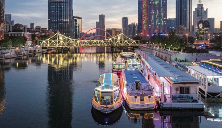 海河是天津人的母親河。 乘船遊海河是近年來遊人欣賞海河、親近海河的最佳方式。 海河遊船航線分為觀光日遊、夜景遊、水陸互動遊等幾種。