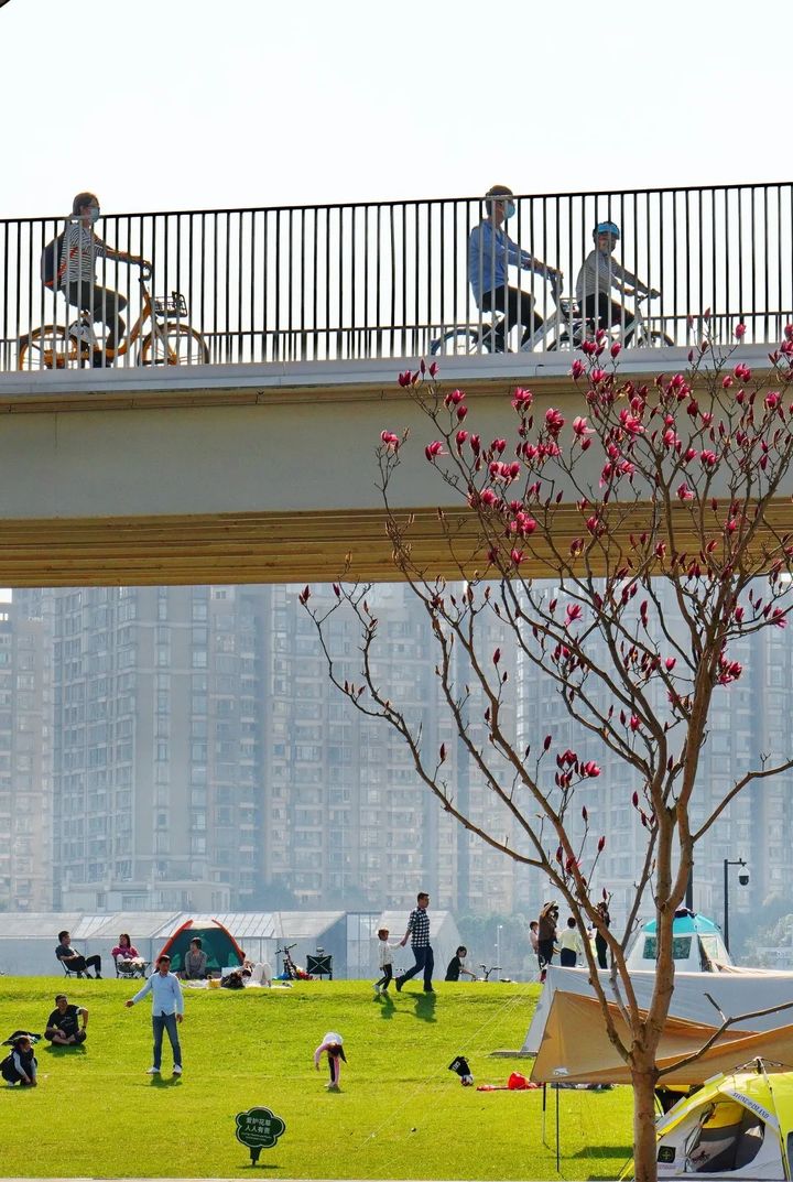 離開後灘濱江之後,就進入了下一段騎行道——耀華濱江。 大家對於耀華濱江的熟知,可能源於它是浦東濱江著名的可以開放搭帳篷的綠地。
