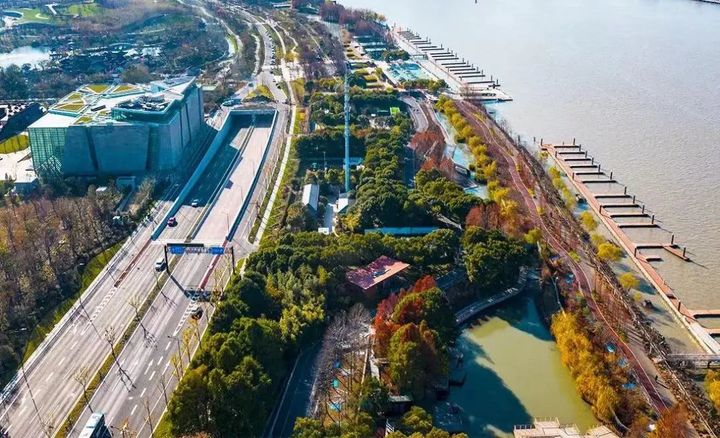 盧浦大橋下的世博公園可以作為本次「撞」南牆騎行之旅的起點,世博公園佔地約23萬平方公尺。