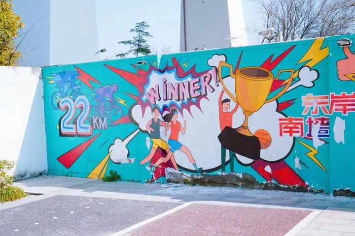 整個牆面以“勝利終點”為創作元素,做了鮮豔的塗鴉和彩繪,有顯目的“22KM”“東岸”“南牆”字樣,頗具時尚感,十分適合打卡拍照。 既然「撞」了南牆,不妨拍張照片留作紀念再回頭。