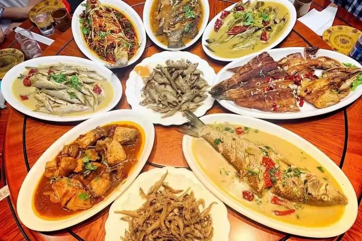 嘉蔭水域資源豐富,魚類繁多,黑龍江為中俄界江,流經本縣六個鄉鎮,是漁民自然捕撈的主要水面,盛產“三花五羅十八子”、鯉、鯽、鱘、鮭、鮭等百種冷水魚。 江水清澈甘冽,冬季漫長,魚類生長緩慢,肉質格外細嫩,鈣、磷、維生素A、D、B1、B2及蛋白質、氨基酸含量較高,具有豐富營養價值。 通過東北菜的傳統和改良做法,或煎、或燉、或蒸、或炸,做出的江魚宴味美異常。