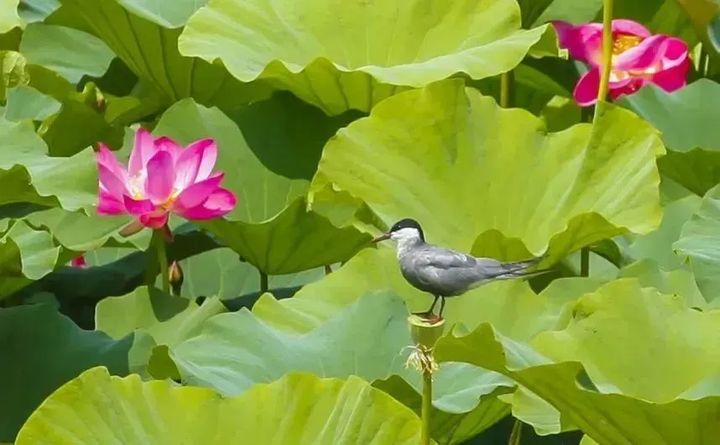 輕快地啄下一片粉嫩的荷花瓣……