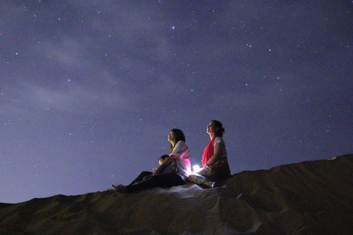 晚上在沙坡頭,聽著黃河水聲,仰望著星空,暫別城市繁華燈光,在這樣一個沒有任何光污染的地方躺下來,毫無煩憂,就這樣靜靜地仰望星空...