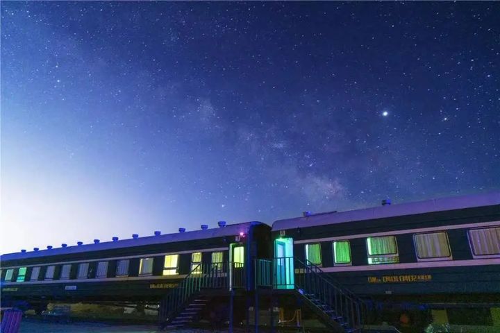 夜晚,住進火車旅館,透過窗戶感受大漠孤煙,長河落日是怎樣的奇觀,聆聽沙漠溫暖深情的傾訴。