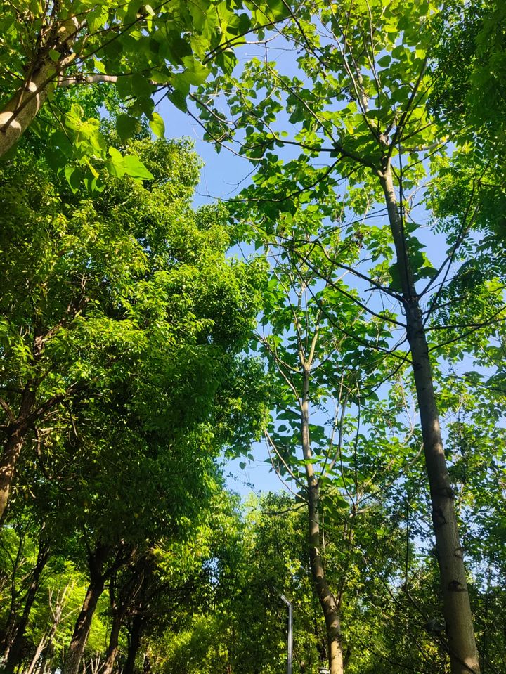 在環山的小道上,草木高大幽深,遮天蔽日。 目之所及,綠意瀰漫,沒有終點,從山間吹來的清風更是沁人心脾。